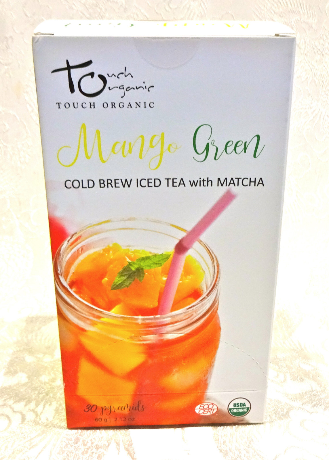 ICED TEA Bags MANGO GREEN Tea w/ Matcha 30 Pyarmids 2.12 oz by Touch Organic